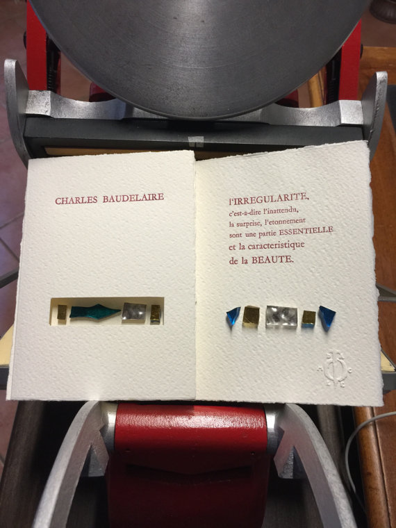 testo composto con caratteri tipografici e stampato su carta acquerello 300 gr. Fabriano